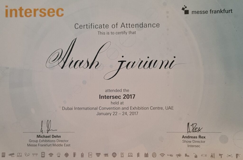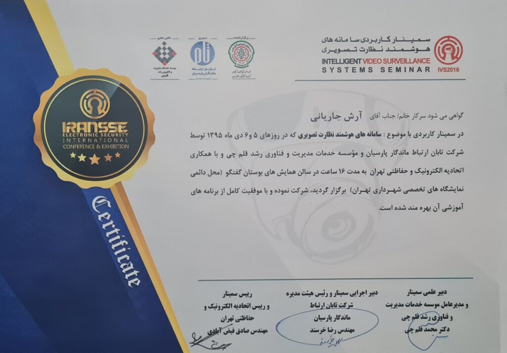 Certificate of attendance at the conference and seminar of CCTV cameras of Qalam Chi Systems Company